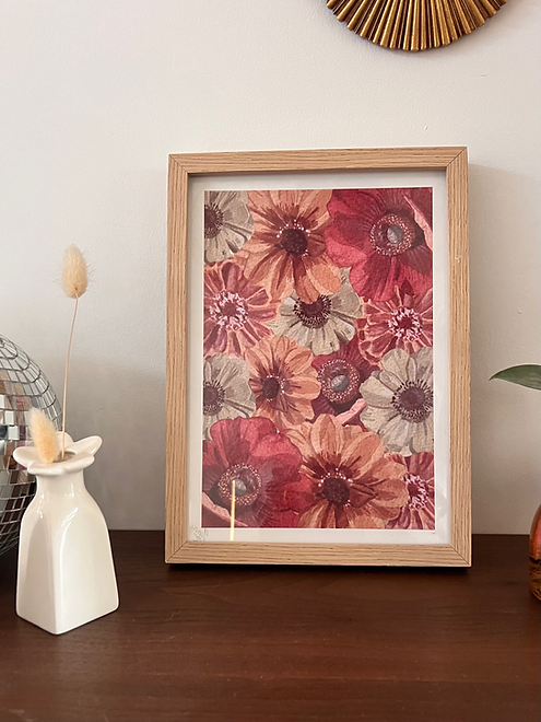 Je peins chaque illustration à l’aquarelle, puis je la numérise en haute qualité et l’imprime sur un papier d’art texturé 240 g/m², au grain fin et élégant.